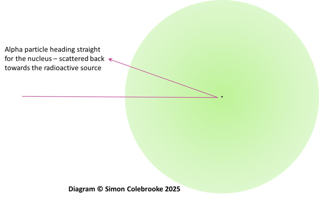 In cases where the alpha particles happen to approach a gold nucleus almost head-on they are deflected right back towards the radioactive source.