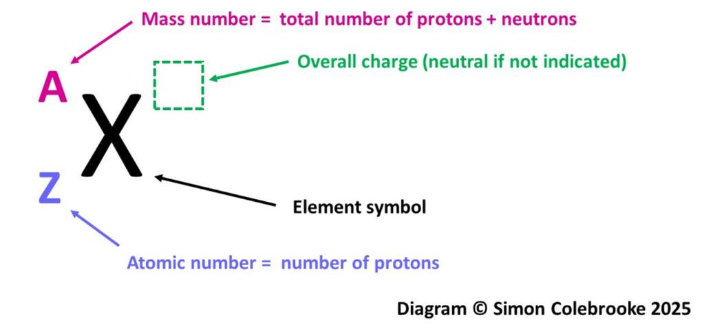 Diagram 2: The location and meaning of numbers in a nuclear symbol.