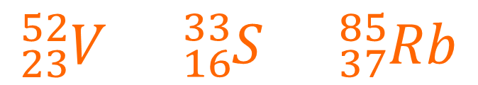 2. Write the nuclear symbol for the atom which has double the amount of protons and double the number of neutrons compared to the vandium atom (V) in Q1.