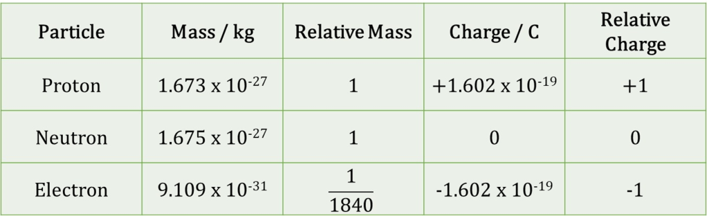 | Species | Protons | Neutrons | Electrons |